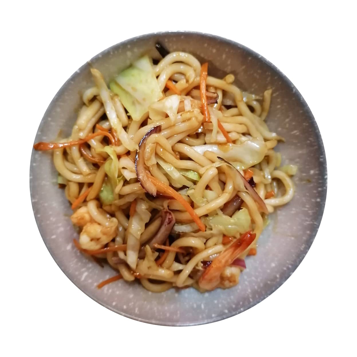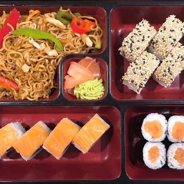 4 maki de salmon 4 gambas roll 1 nigiri de salmon 1 nigiri de atun 1 nigiri de langostino 1 yakisoba