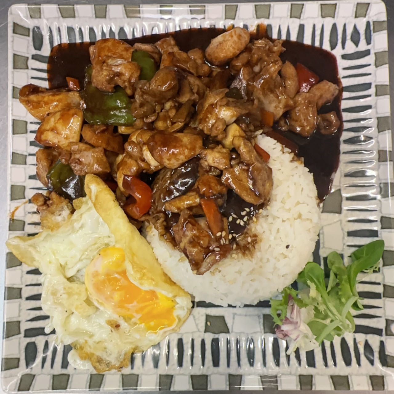 Ternera salteada, verduras y salsa hoisin. Contiene alérgenos: gluten, soja.